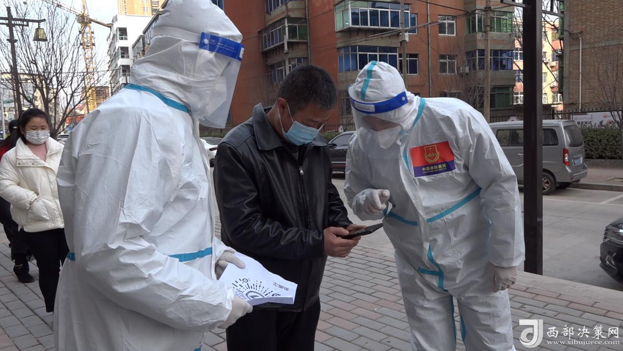 西部決策網(wǎng)訊 “請大家戴好口罩,依次排隊,保持一米以上安全距離。請?zhí)崆俺鍪窘】荡a、行程碼,方便工作人員錄入信息。”印臺區(qū)消防救援大隊班長方琦在現(xiàn)場提示群眾說。