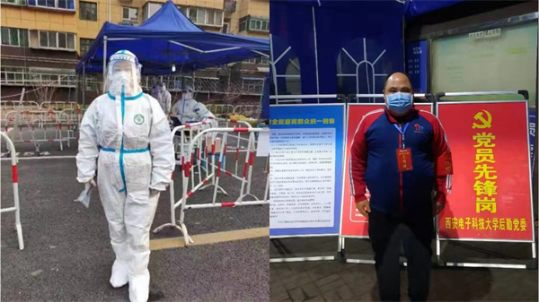 “我聽說急需志愿者,就報(bào)名了,當(dāng)時(shí)也沒顧上害怕,就想著做點(diǎn)兒什么,能做一點(diǎn)是一點(diǎn)”,物理與光電工程學(xué)院黨委書記獨(dú)國(guó)社已有近27年的黨齡,現(xiàn)在,他又有了一個(gè)新的身份——西電科大社區(qū)44號(hào)樓2單元志愿服務(wù)小組組長(zhǎng),“第一天去的時(shí)候已經(jīng)看到隔離帶拉起來了,單元樓門口也封起來了,有很多穿著防護(hù)服的社區(qū)志愿者、醫(yī)護(hù)人員正準(zhǔn)備上樓去挨家挨戶給做核酸,那個(gè)時(shí)候會(huì)有一些緊張,但看到他們義無反顧,想到樓上的教職工們可能也會(huì)有些害怕,我就覺得我得調(diào)整好自己,確保一個(gè)飽滿的狀態(tài)為他們服務(wù)”。