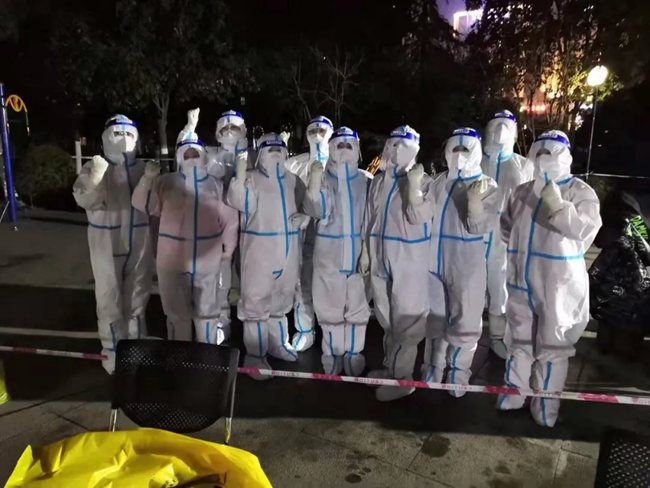當(dāng)所有工作結(jié)束后已經(jīng)是凌晨?jī)牲c(diǎn),走出樓門(mén)抬頭只能看到夜色中飄繞的云霧。一陣寒風(fēng)吹過(guò),困意、寒意、饑餓席卷而來(lái),身前靜謐的路燈,與身后的萬(wàn)家燈火形成了鮮明對(duì)比,此刻的他們別無(wú)他想,只有一個(gè)信念:一定要堅(jiān)守住這片陣地。