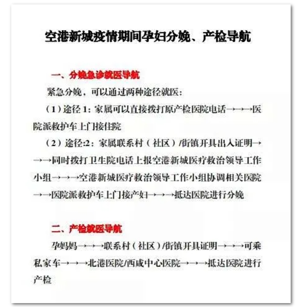 為了便于孕媽媽們更系統(tǒng)的了解就診流程,胡偉超還會同北杜衛(wèi)生院吳新雷,醫(yī)療救治工作領(lǐng)導(dǎo)小組張亮、呂琳連夜制作了《空港新城疫情期間孕婦分娩、產(chǎn)檢導(dǎo)航》,詳細介紹各類情況的流程。
