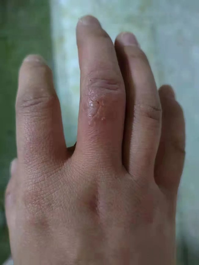 護士長楊敏的手被凍出了瘡。西安大興醫(yī)院供圖