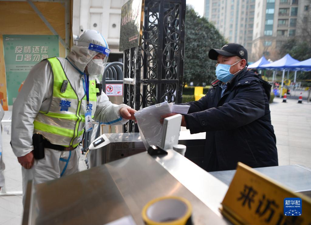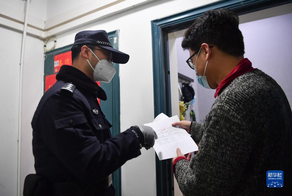 1月10日,西安市公安局新城分局民警在負責(zé)執(zhí)勤的社區(qū)向居民講解就醫(yī)流程。新華社記者 張博文 攝
