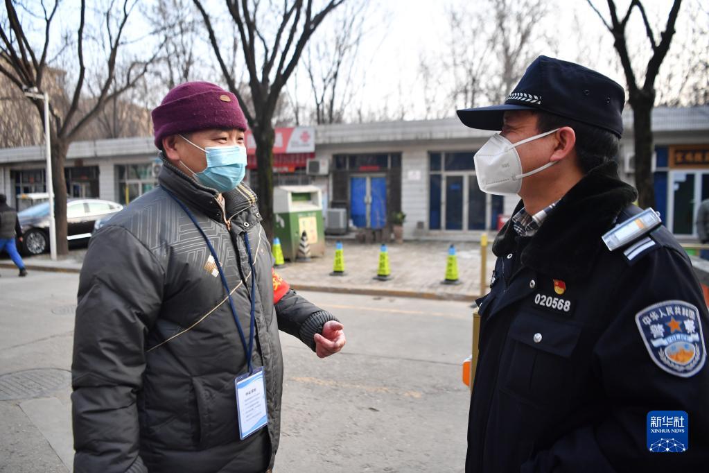 1月10日,西安市公安局新城分局民警在負責(zé)執(zhí)勤的社區(qū)與物業(yè)管理人員交流。新華社記者 張博文 攝