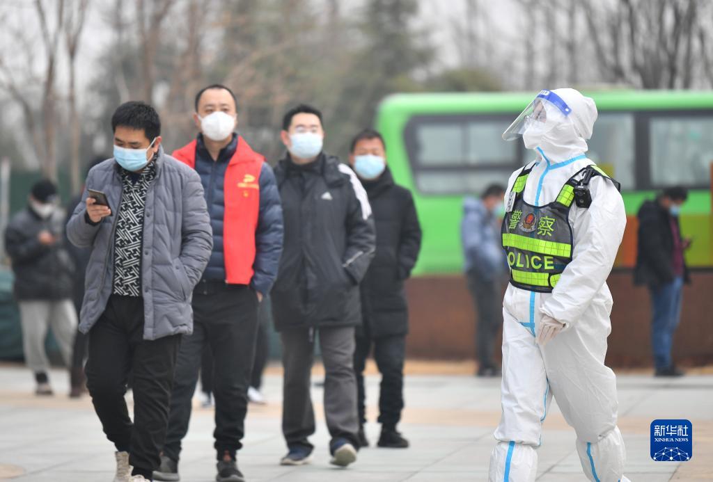 1月10日,西安市公安局浐灞生態(tài)區(qū)分局民警在轄區(qū)內(nèi)一處核酸檢測點執(zhí)勤。新華社記者 張博文 攝