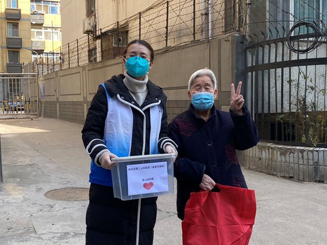 當志愿者譚詩韻將藥品送到小區(qū)門口時,鄭爺爺的老伴兒激動地表示:“我們一通電話你們就把藥送了過來,除了感謝,我真的不知道該說什么,謝謝你們!”