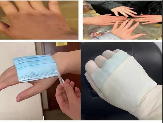 冬季的室外,還要反復進行手部消毒,一天工作下來,核酸采樣隊隊員們的手都被凍得像石頭一樣,又紅又腫。為了解決這個問題,北關核酸采樣隊隊長解林清輾轉反側,終于想到可以把外科手套折疊后墊到手背關節(jié)部位,取得保暖的效果。經過實踐操作,這項技術已經在各核酸采樣隊伍內推廣使用。
