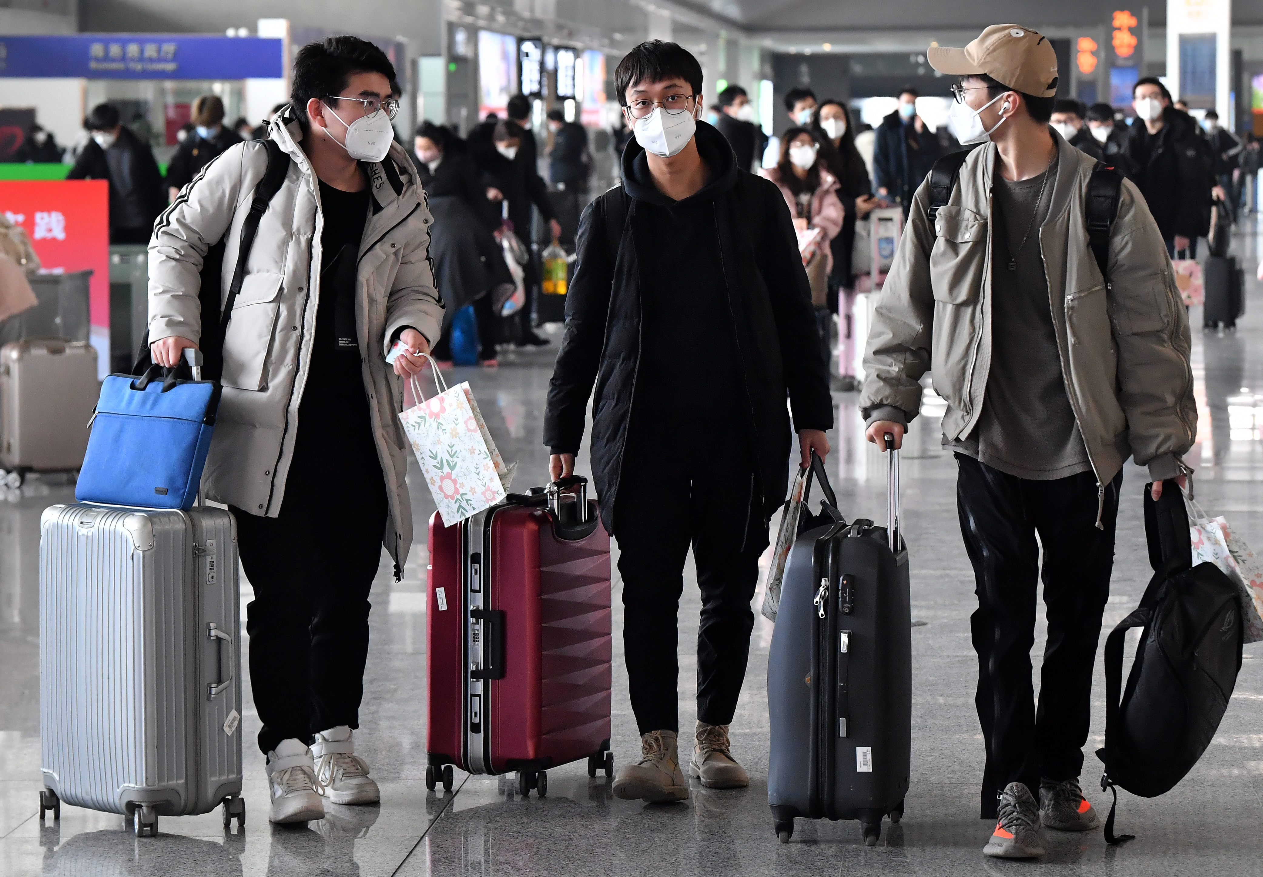 1月16日,西安北客站,離校返鄉(xiāng)的西安高校學(xué)生進(jìn)入候車大廳。新華社記者 劉瀟 攝