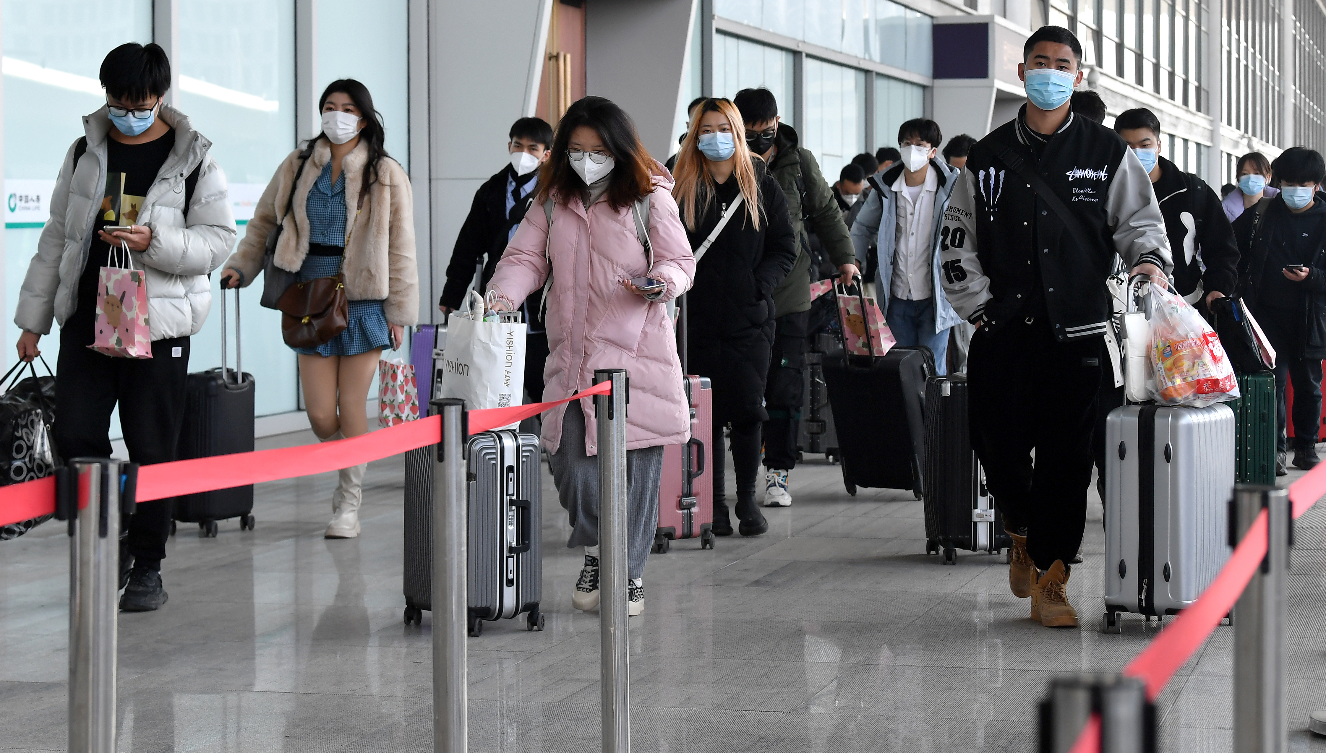 1月16日,西安北客站,離校返鄉(xiāng)的西安高校學(xué)生排隊(duì)進(jìn)站。新華社發(fā)(鄒競一 攝)