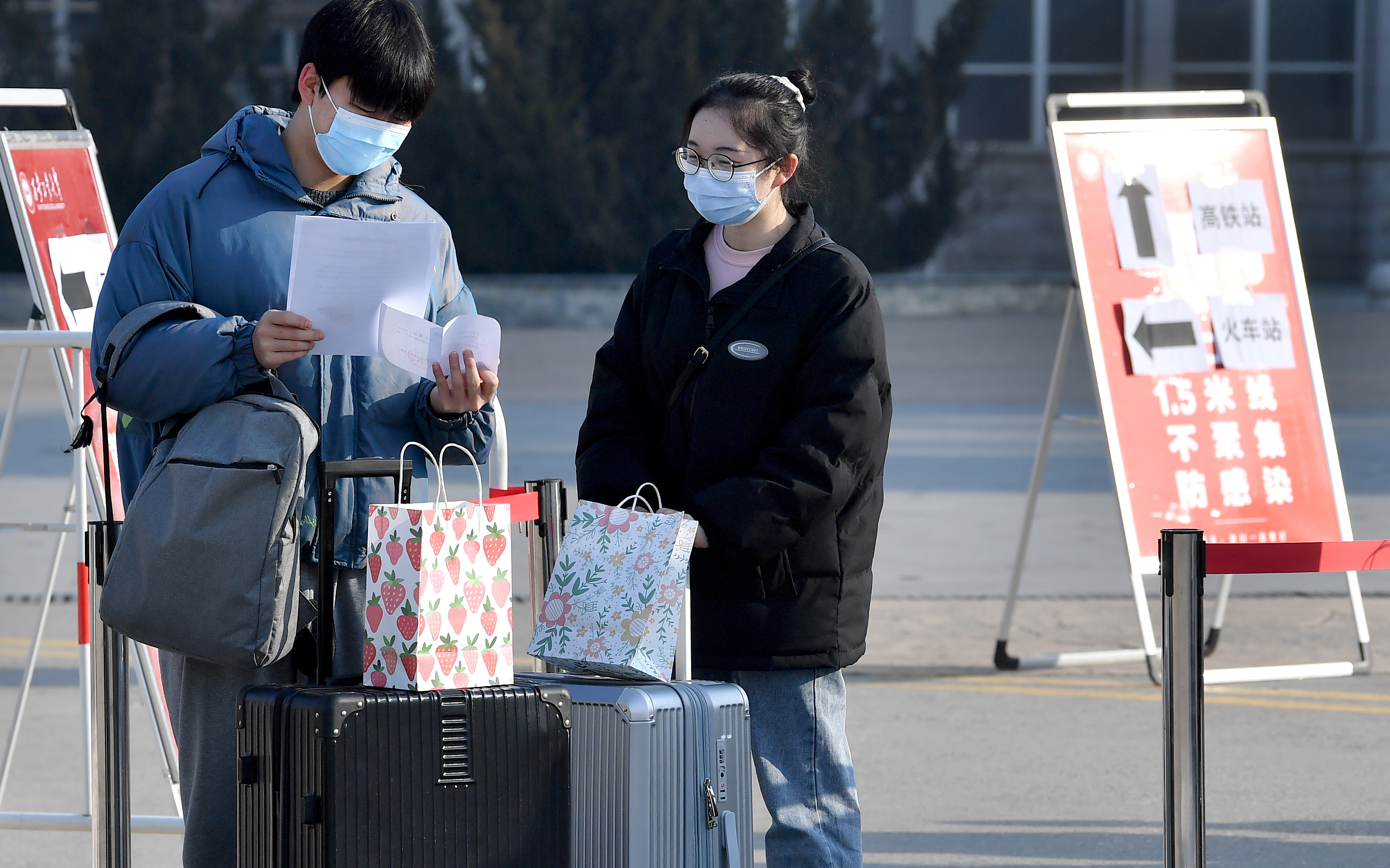 1月16日,西安北客站,離校返鄉(xiāng)的西安高校學(xué)生進(jìn)站時(shí)出示核酸檢測報(bào)告。新華社記者 劉瀟 攝