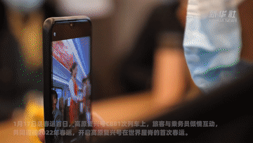 1月17日是春運(yùn)首日,高原復(fù)興號(hào)C881次列車上,旅客與乘務(wù)員傾情互動(dòng),共同迎接2022年春運(yùn),開啟高原復(fù)興號(hào)在世界屋脊的首次春運(yùn)。