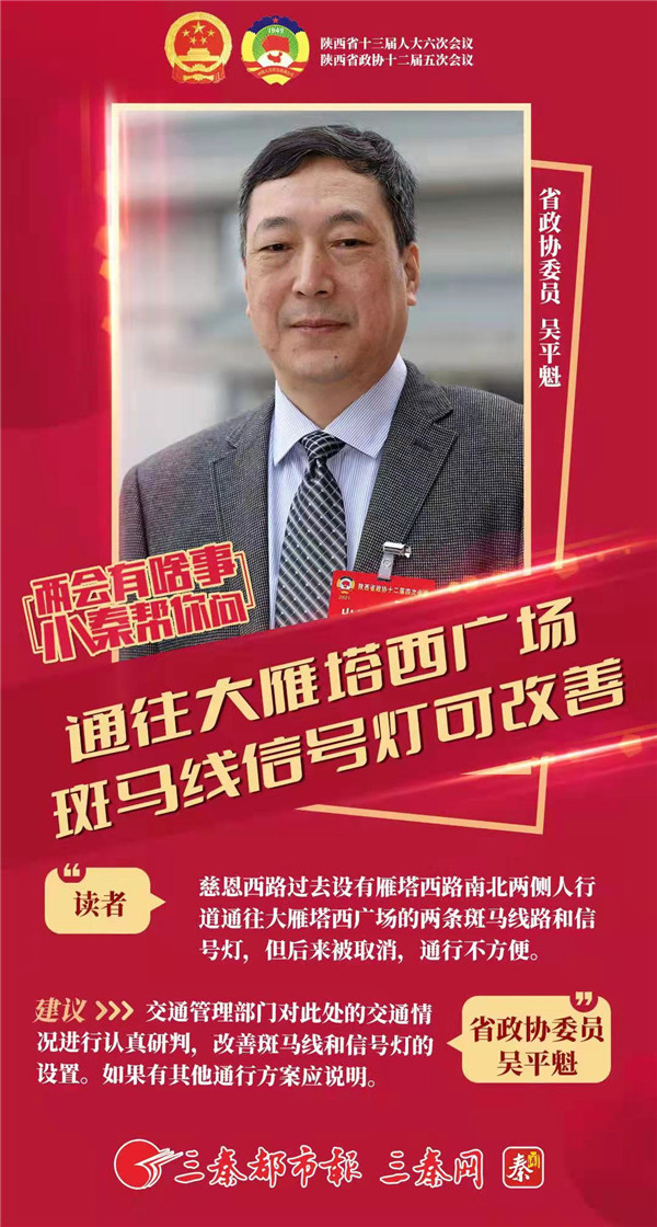 海報(bào)·建議|省政協(xié)委員吳平魁:通往大雁塔西廣場(chǎng)斑馬線信號(hào)燈可改善