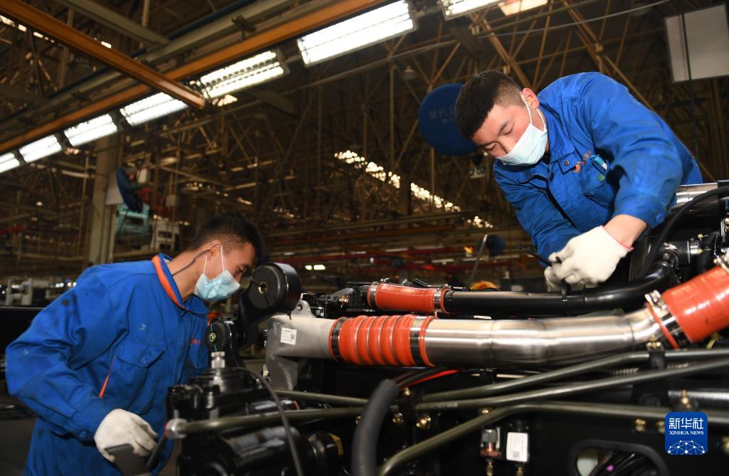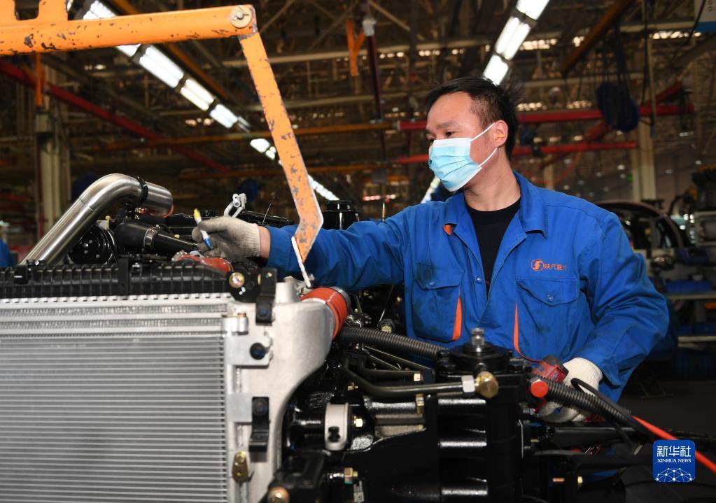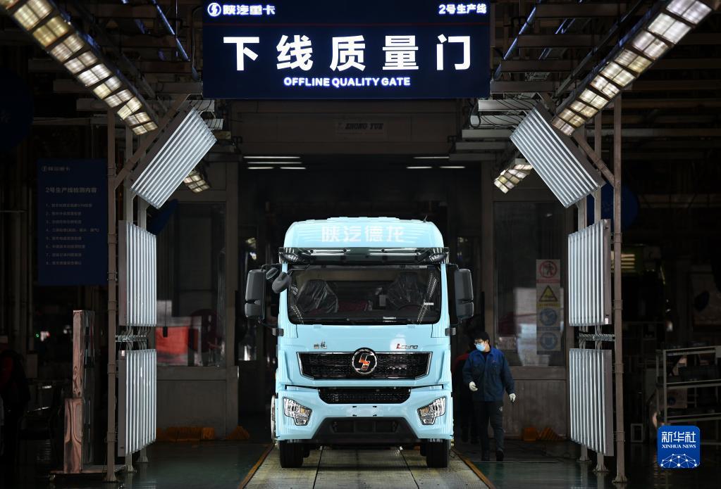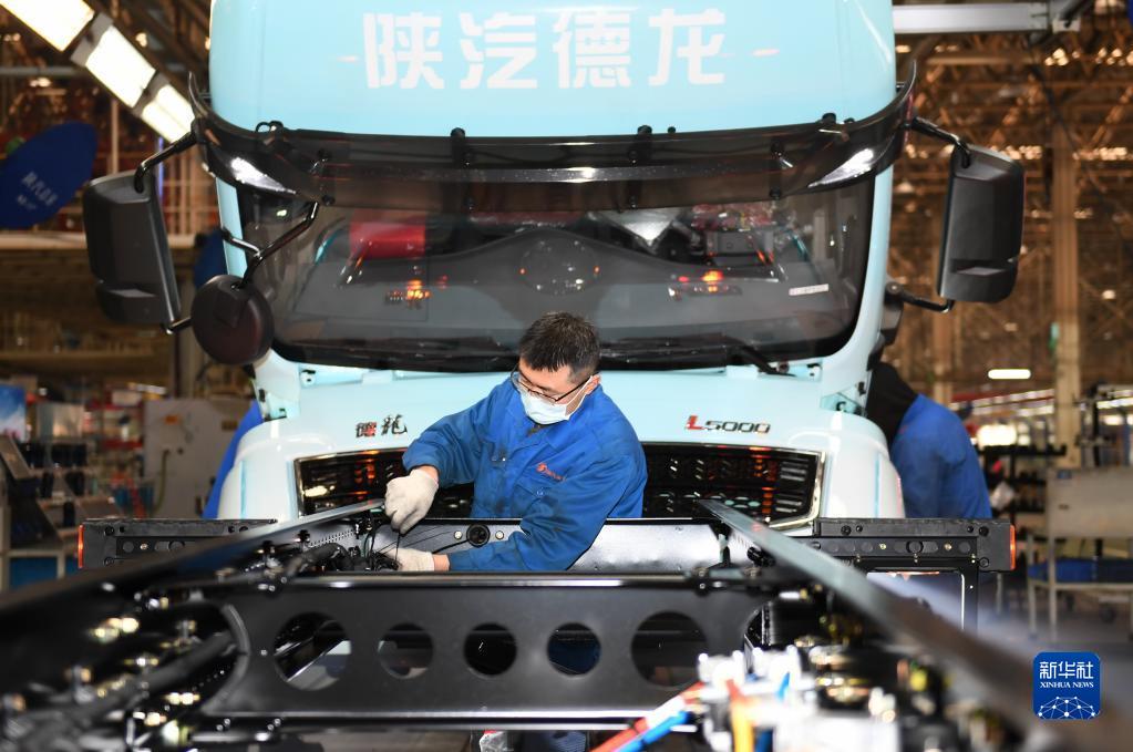 1月20日,工作人員在陜西汽車控股集團(tuán)有限公司總裝車間進(jìn)行重型卡車驗收。新華社記者 李一博 攝