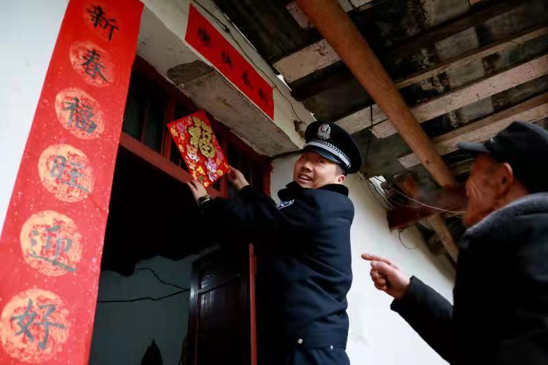 今年得知張有學(xué)的兒子、兒媳由于疫情原因可能不回家過(guò)年,家里就兩位80多歲的老人和孫女在家。在1月25日小年這天,王鵬提前給老人準(zhǔn)備好了年貨,帶著民警來(lái)張有學(xué)家?guī)兔?。在張有學(xué)家里,王鵬和老人搭伙貼好了新年對(duì)聯(lián)、幫老人整理好柴火,所里的年輕民警也主動(dòng)和小慧姐妹溝通學(xué)習(xí)情況,為她們的學(xué)習(xí)加油鼓勁。