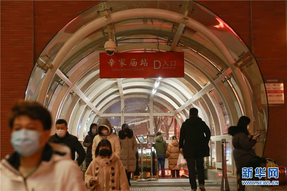 1月25日,西安地鐵三號(hào)線辛家廟站D口來往的進(jìn)出站乘客。新華網(wǎng) 王智超 攝