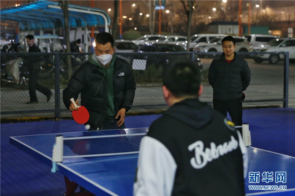 1月25日,在西安市未央?yún)^(qū)一處健身場(chǎng)所,幾名年輕人正在打乒乓球。新華網(wǎng) 王智超 攝