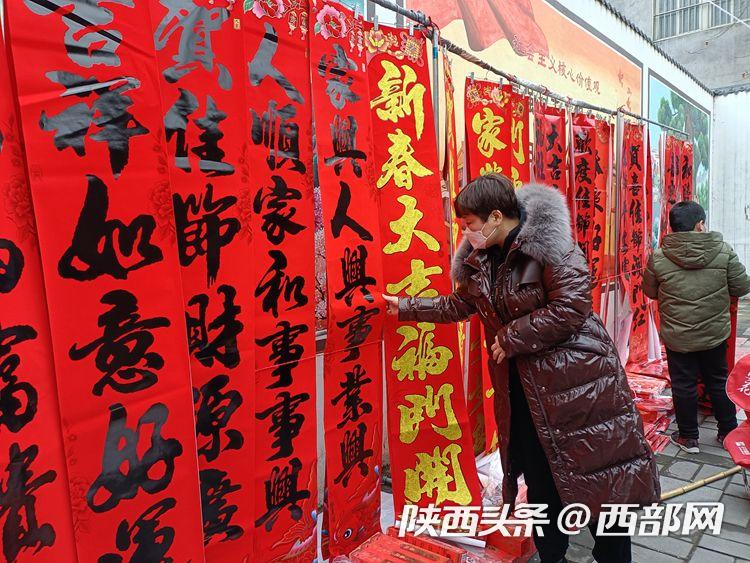 在鄠邑區(qū)書(shū)畫(huà)一條街,顧客在挑選春聯(lián)。
