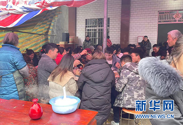 2月7日,當(dāng)?shù)剞r(nóng)歷虎年的第一場(chǎng)壩壩宴。新華網(wǎng)發(fā)(譚俊 攝)