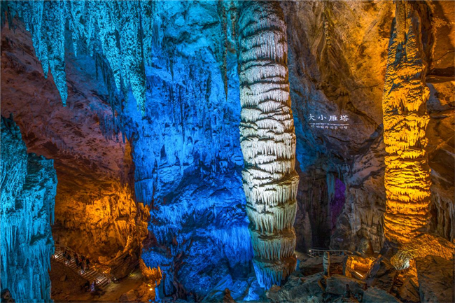 洞中金鑾寶殿、雷峰寶塔、玉柱擎天、玉林瓊花、犬牙晶花、千年之吻,動(dòng)物王國(guó)、海底龍宮、巨幕飛瀑、石田珍珠、生命之源、珊瑚瑤池等景點(diǎn)形態(tài)迥異,光怪陸離,讓人不禁感嘆大千世界無(wú)奇不有,大自然造物之神奇。