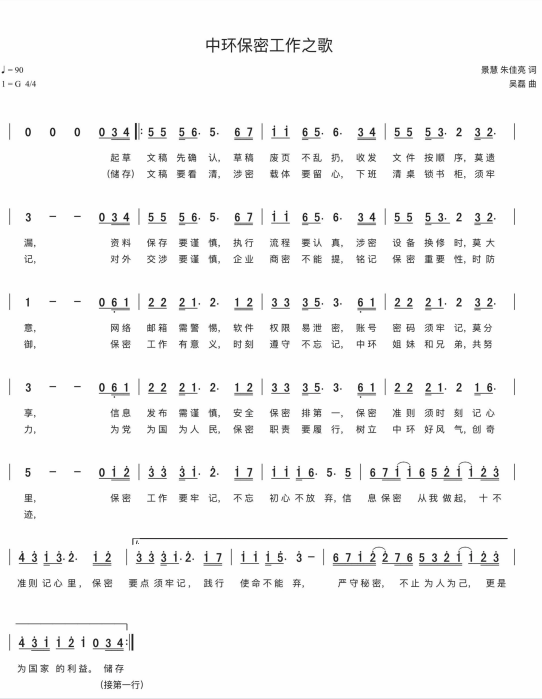 慶祝建黨百年獲獎(jiǎng)歌曲作品選集——《中環(huán)保密工作之歌》詞曲