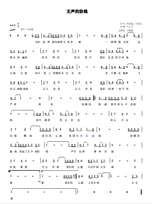慶祝建黨百年獲獎(jiǎng)歌曲作品選集——《無聲的防線》詞曲。