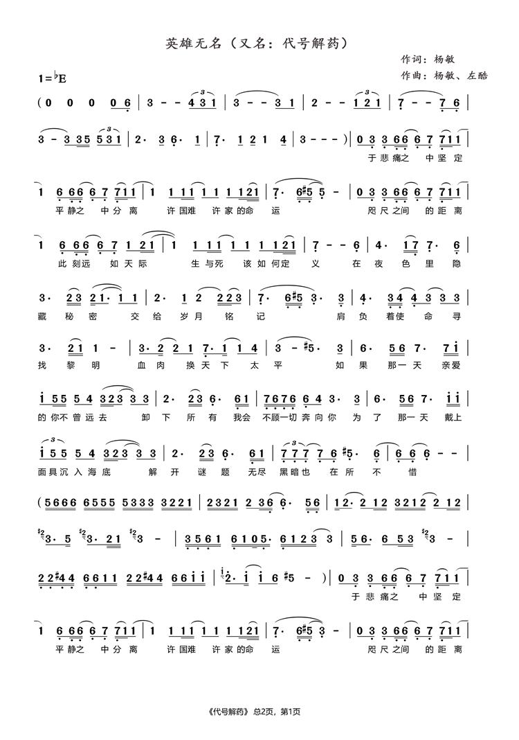 慶祝建黨百年獲獎歌曲作品選集——《英雄無名》歌詞。