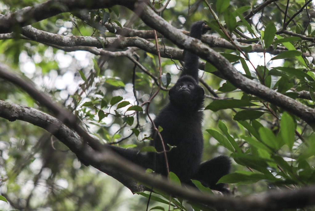 這是在海南霸王嶺自然保護區(qū)內(nèi)拍攝的海南長臂猿(2019年10月25日拍攝)。新華社記者 蒲曉旭 攝