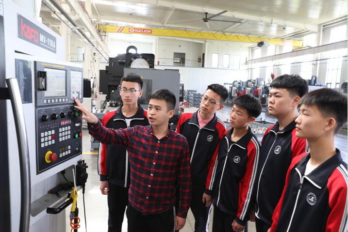 2021年5月8日,河北省河間市職業(yè)教育中心教師在河間市一家企業(yè)為學(xué)生講解機(jī)床實操。新華社記者 駱學(xué)峰 攝
