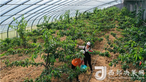 村民王大姐就是其中受益的一員。由于丈夫身體受傷不能干重活,弟弟身有殘疾,王大姐近幾年一直在產(chǎn)業(yè)園里打工。這份工作時(shí)間靈活,可以做到有事忙事,沒事上班。4月27日,王大姐正忙著在櫻桃大棚里采摘。提到這份工作,她心滿意足地告訴記者:“一小時(shí)10元,算下來平均一個(gè)月有2000多的收入。”除了這份收入,她家還種植了蘋果等經(jīng)濟(jì)農(nóng)作物,也能增加一些收入。