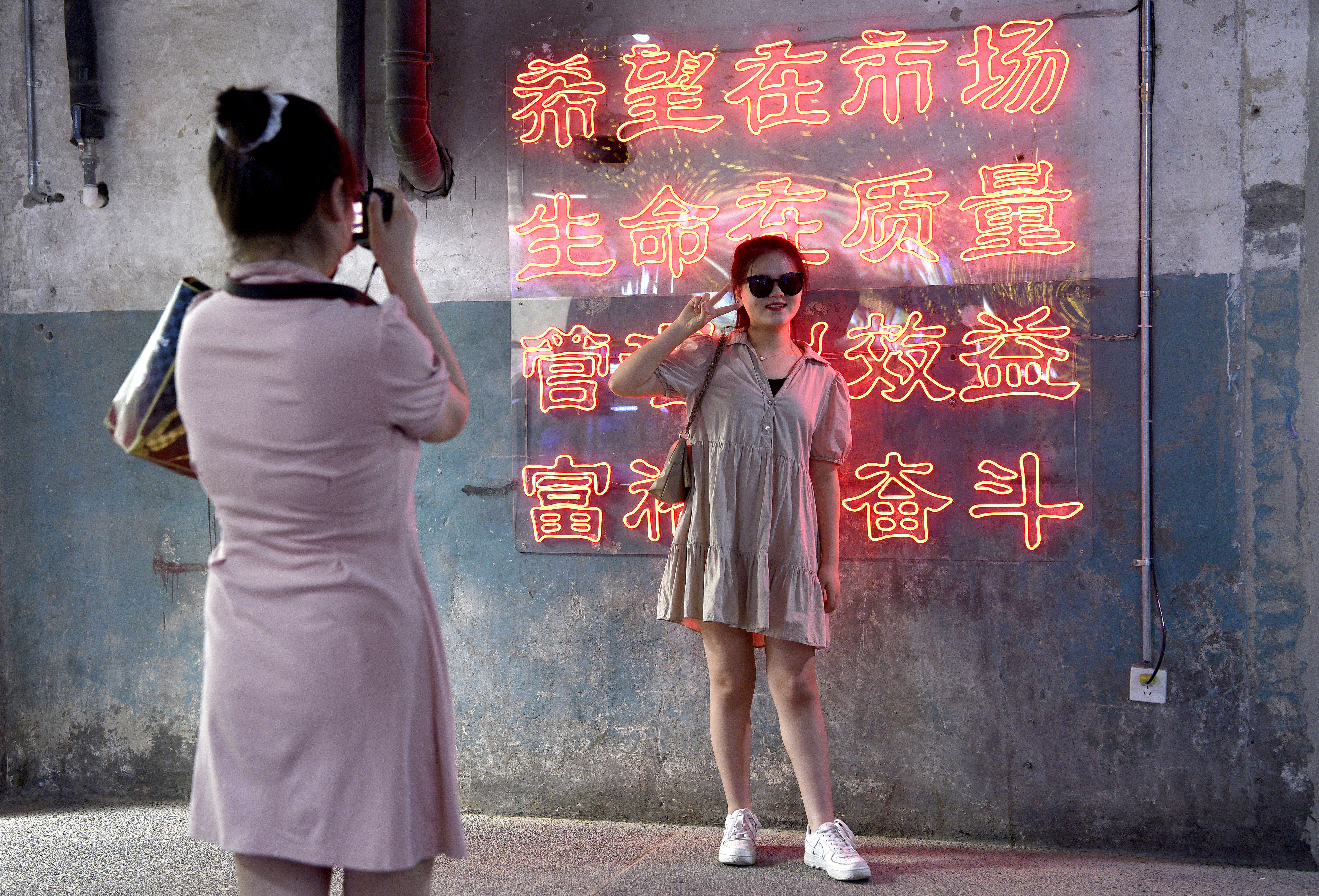 5月29日,市民在西安際華3511文創(chuàng)科技園內拍照。 新華社記者 劉瀟 攝