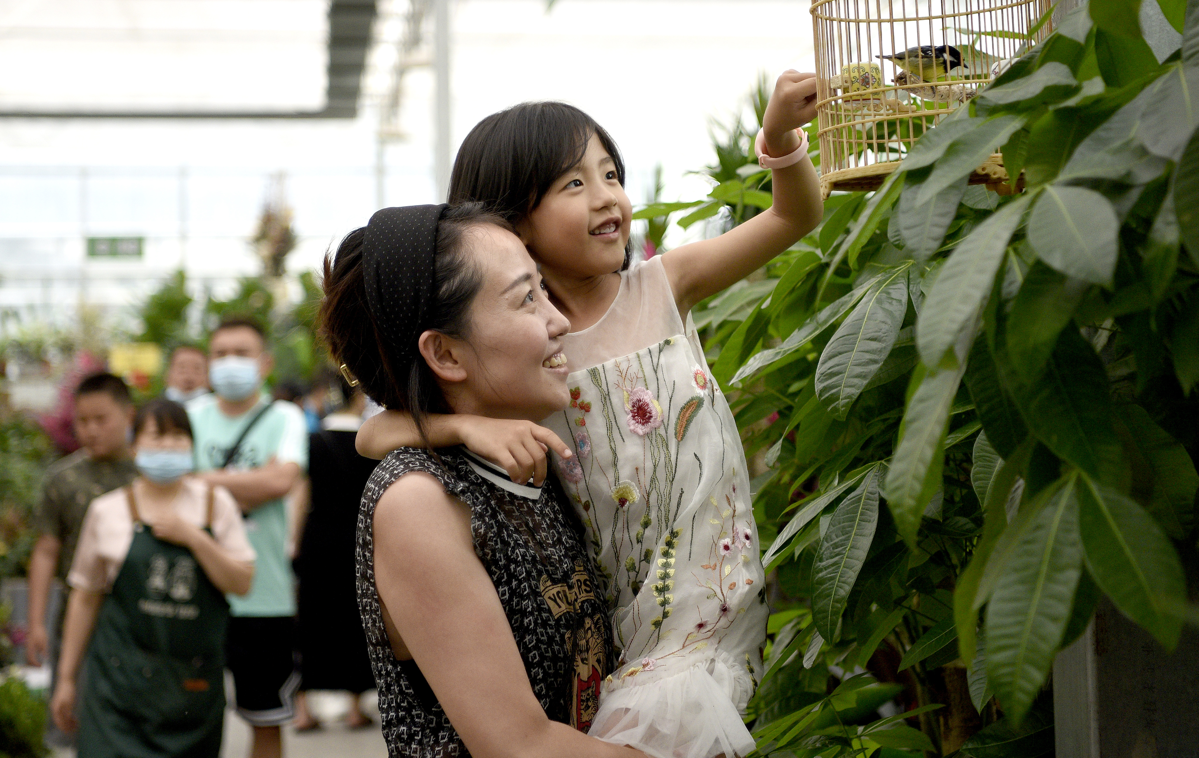 市民在西安際華3511文創(chuàng)科技園內的花市挑選花卉(5月20日攝)。 新華社記者 劉瀟 攝