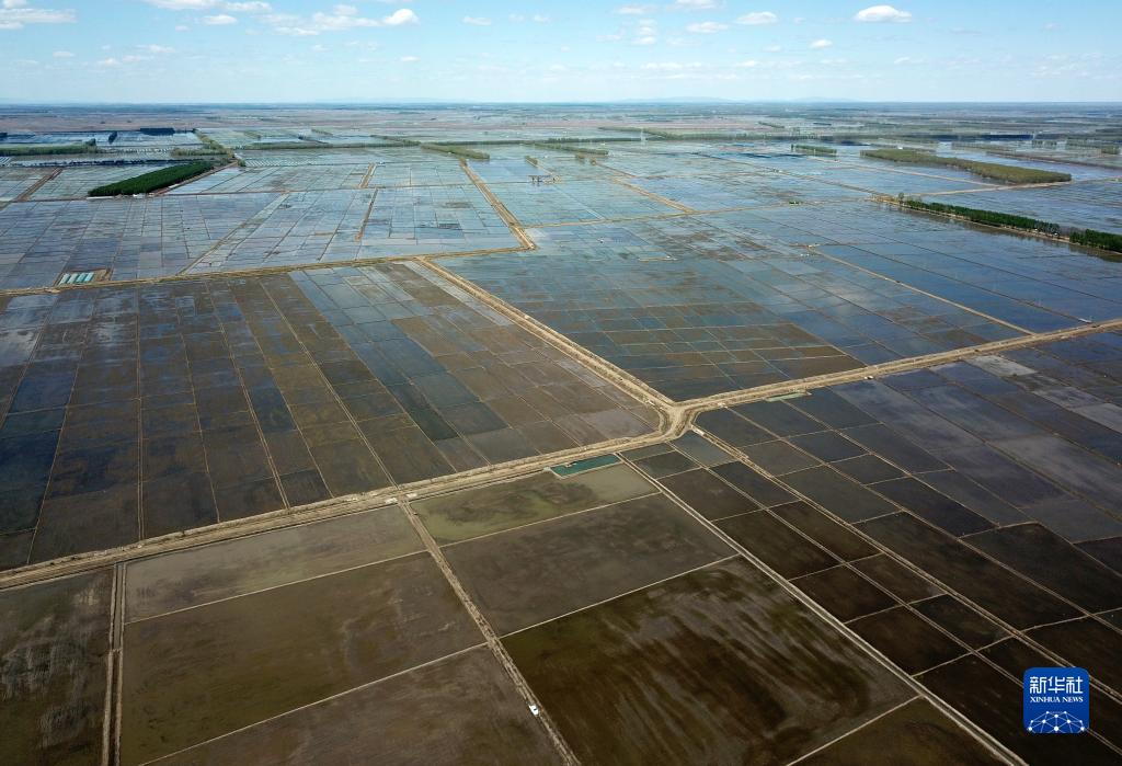 這是5月18日拍攝的北大荒集團(tuán)七星農(nóng)場(chǎng)有限公司的稻田(無人機(jī)照片)。新華社記者 王建威 攝
