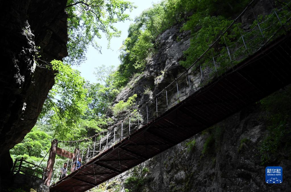 5月30日,游客在位于陜西省柞水縣的牛背梁國家森林公園內游玩。 新華社記者 李一博 攝