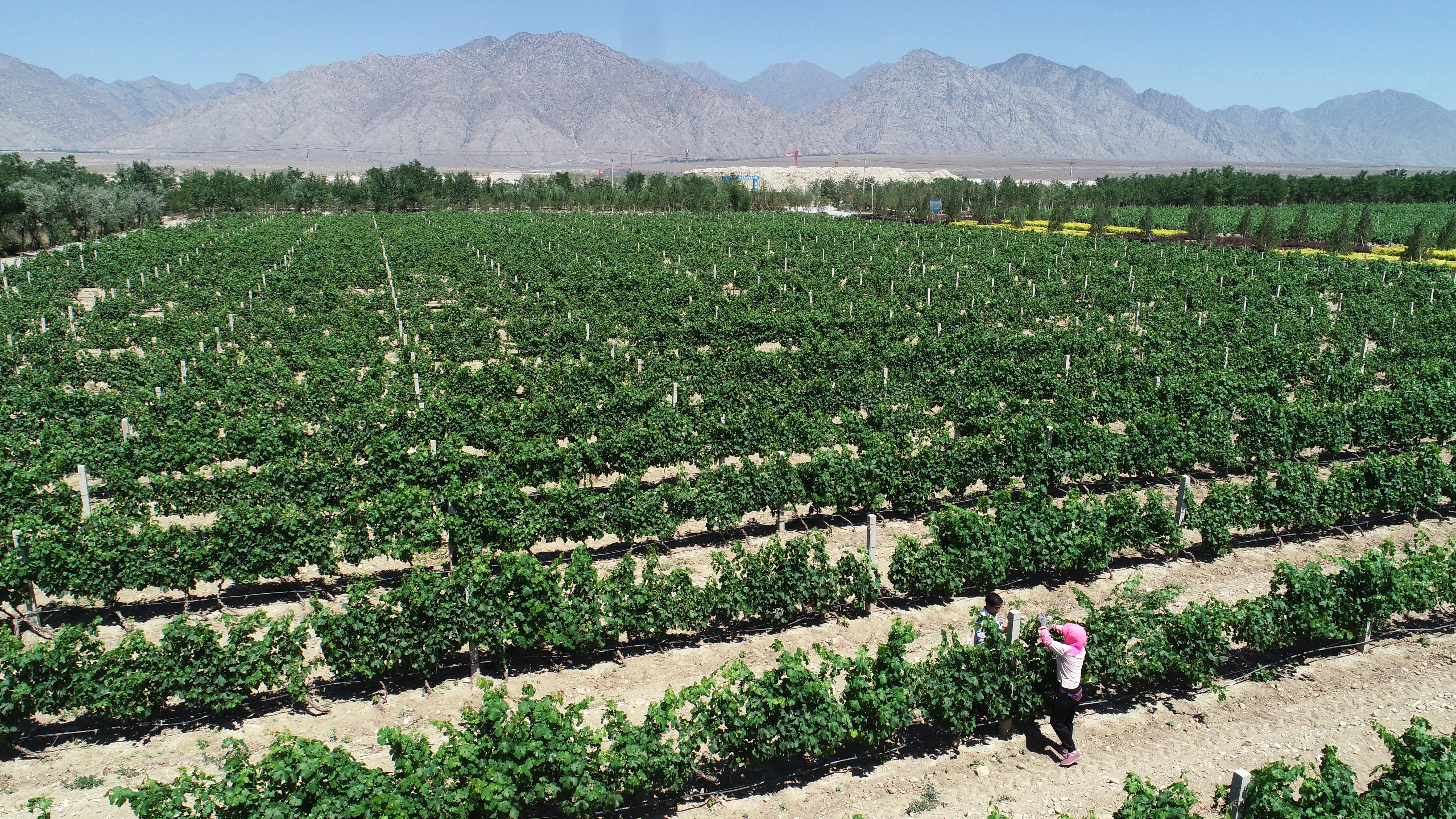 “賀蘭山下果園成,塞北江南舊有名。”夏日的賀蘭山東麓,翠綠的葡萄園沿山勢綿延南北,一眼望不到頭。