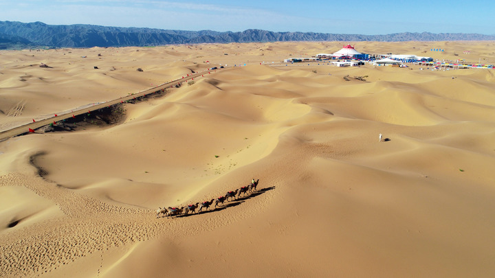 這是在寧夏中衛(wèi)市拍攝的騰格里沙漠(無人機照片,2018年9月7日攝)。 新華社記者 王鵬 攝