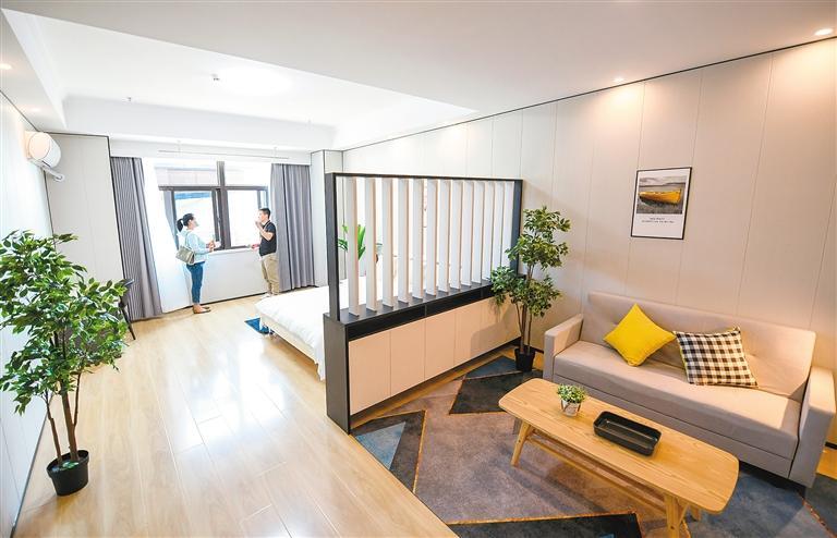 簡單介紹后,工作人員帶著劉女士參觀了位于6樓的樣板間。“真寬敞夠亮堂!”房門打開的一瞬間,劉女士忍不住感嘆道。這套房源有70多平方米,裝修簡約時尚、充滿年輕氣息,洗衣機、冰箱、空調等設施一應俱全,家具陳列干凈整潔。“真沒想到條件這么好,房間內的裝修和家具都是我喜歡的樣子。尤其是房間里有獨立的衛(wèi)浴,住起來會很方便。”劉女士說,自己對房源很滿意。參觀結束后,劉女士立即向工作人員詳細詢問租住流程。