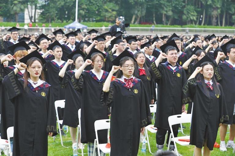 西安交通大學畢業(yè)典禮上,同學們莊嚴宣誓,表達了把青春奮斗融入黨和人民事業(yè)的堅定決心。西安交通大學供圖