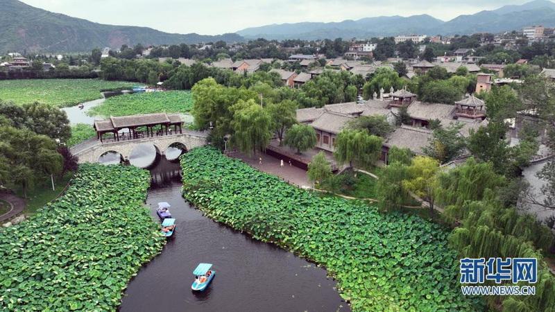 近日,秦嶺深處的陜西省商洛市丹鳳縣棣花古鎮(zhèn)荷花盛開(kāi),吸引游人前來(lái)觀賞。(記者 陶明 攝)