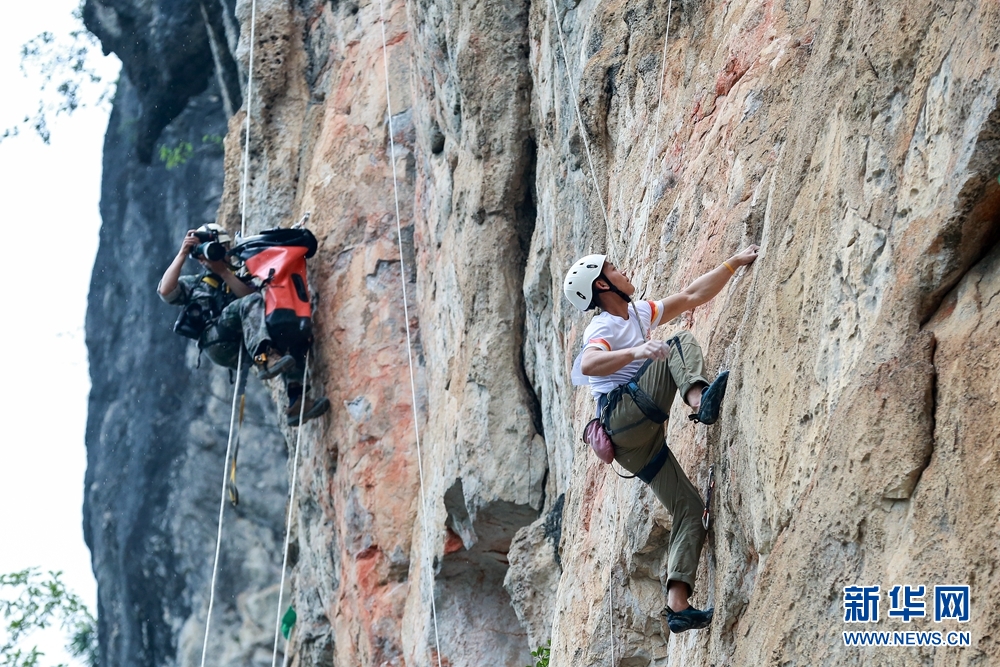 攀巖愛(ài)好者正在攀巖。新華網(wǎng)發(fā) 黃羽 攝