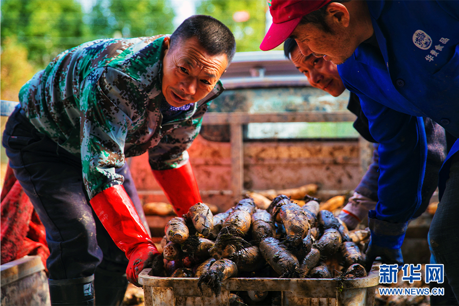 圖為藕農(nóng)正在往加工工廠運(yùn)送自己采收的新鮮蓮藕。新華網(wǎng)發(fā)(受訪者提供)