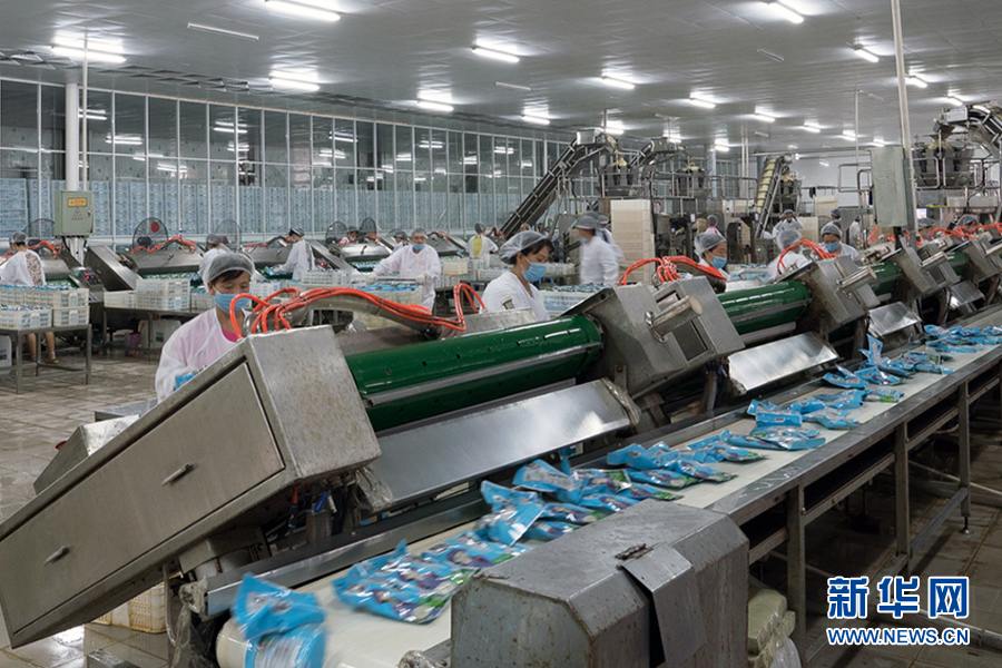 圖為湖北華貴食品有限公司泡藕帶加工生產(chǎn)車間。新華網(wǎng)發(fā)(受訪者提供)