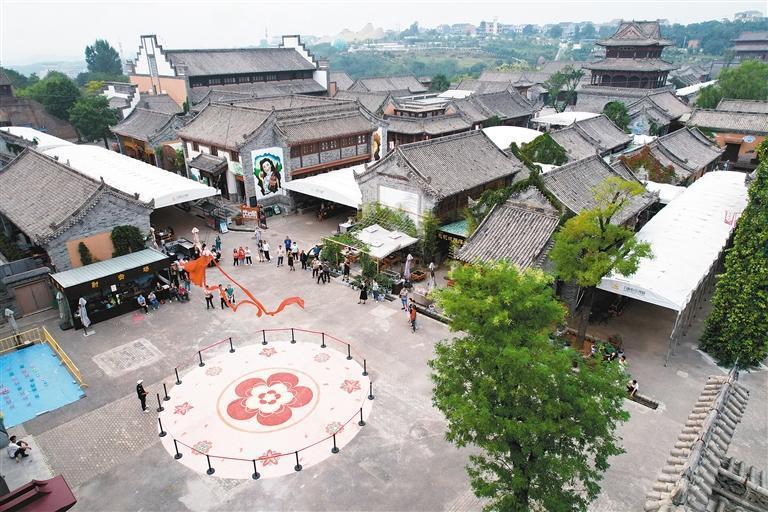近日,游客在白鹿原影視城內(nèi)游覽(無人機(jī)照片)。