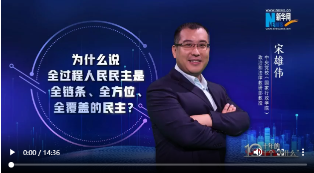 十年非凡成就,蘊藏深刻啟示。如何用中國理論闡釋中國實踐?新華網(wǎng)聯(lián)合中央黨校(國家行政學(xué)院)國家高端智庫,推出“思客講堂·黨校公開課(第三季)”《以“理”服人:十年的十個“為什么”》。十位黨校青年教師通過十集理論短視頻,帶你探究非凡成就背后的“中國密碼”。本期讓我們跟隨中央黨校(國家行政學(xué)院)政法教研部教授宋雄偉,感受全過程人民民主在中國的生動實踐。