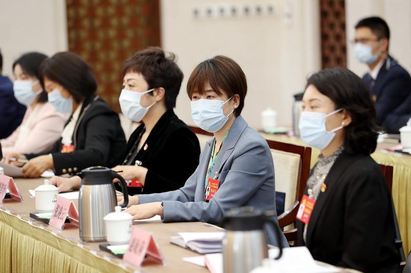 按照中國(guó)共產(chǎn)黨第二十次全國(guó)代表大會(huì)統(tǒng)一安排,陜西省代表團(tuán)10月15日在住地召開(kāi)全體會(huì)議。左一為路生梅代表。