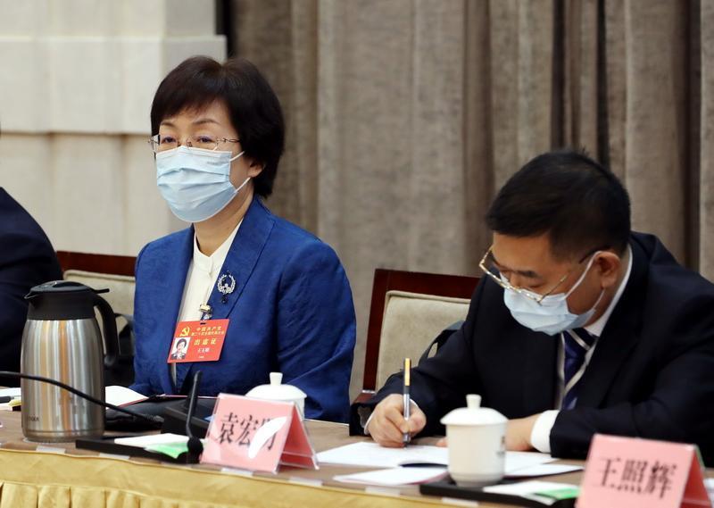 按照中國(guó)共產(chǎn)黨第二十次全國(guó)代表大會(huì)統(tǒng)一安排,陜西省代表團(tuán)10月15日在住地召開(kāi)全體會(huì)議。圖左為王玉娥代表。