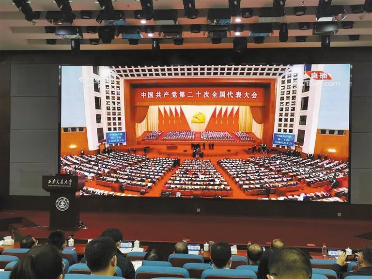西安交通大學(xué)組織師生以“集體+自主”形式觀看黨的二十大開幕會。西安交通大學(xué)校長王樹國表示,黨的二十大報(bào)告強(qiáng)調(diào)要實(shí)施科教興國戰(zhàn)略,強(qiáng)化現(xiàn)代化建設(shè)人才支撐,交大人倍感振奮,一定會傳承好西遷精神,勇挑時(shí)代重?fù)?dān),為黨育人、為國育才。西遷老教授盧烈英表示,自己雖然年紀(jì)大了,也要發(fā)揮余熱,為學(xué)校全面提高人才自主培養(yǎng)質(zhì)量、奮力向世界一流大學(xué)邁進(jìn)貢獻(xiàn)力量。