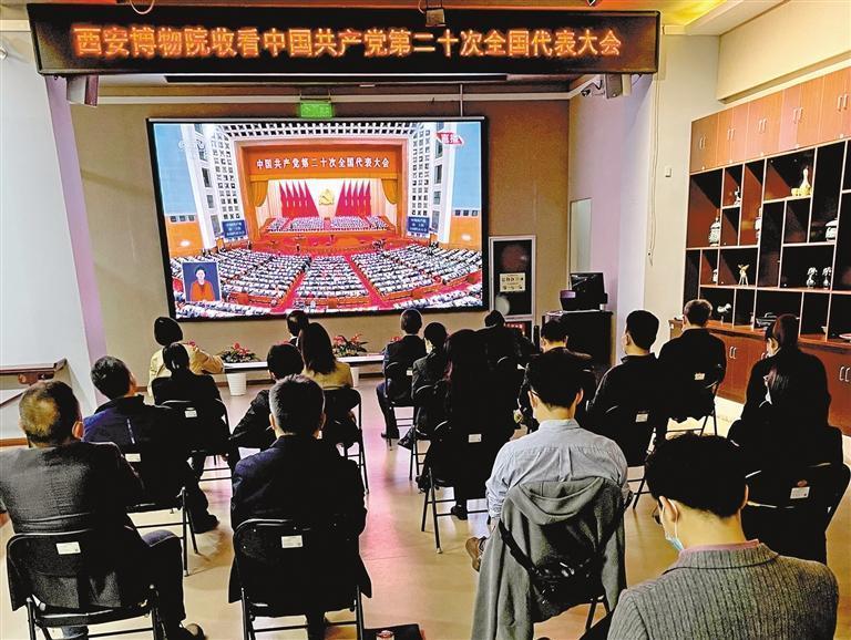10月16日,西安博物院黨員干部群眾一起收看黨的二十大開幕會。記者 戴吉坤攝