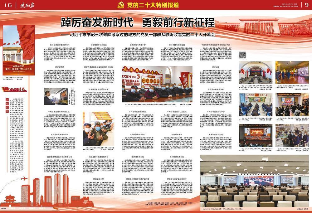 這是重要的時(shí)間節(jié)點(diǎn),也是奮斗的關(guān)鍵坐標(biāo)。在舉世矚目的中國共產(chǎn)黨第二十次全國代表大會勝利召開之際,陜西廣大黨員干部群眾歡欣鼓舞,紛紛通過各種形式收聽收看開幕會,共同見證這一歷史時(shí)刻,感受著團(tuán)結(jié)奮進(jìn)的時(shí)代脈動(dòng)。本報(bào)即日起推出“二十大時(shí)光”欄目,組織記者分赴全省各地,與黨員干部群眾一起共度二十大時(shí)光,采訪報(bào)道廣大黨員干部群眾認(rèn)真學(xué)習(xí)黨的二十大報(bào)告的生動(dòng)場景,反映社會各界對黨的二十大的熱烈反響。