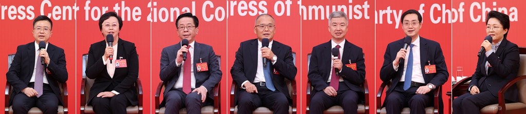10月19日,中國(guó)共產(chǎn)黨第二十次全國(guó)代表大會(huì)新聞中心舉行集體采訪。重慶、四川、貴州、云南、西藏、陜西、甘肅代表團(tuán)新聞發(fā)言人出席,介紹代表團(tuán)學(xué)習(xí)討論二十大報(bào)告情況,并回答記者提問(wèn)(拼版照片)。新華社記者 張玉薇 攝
