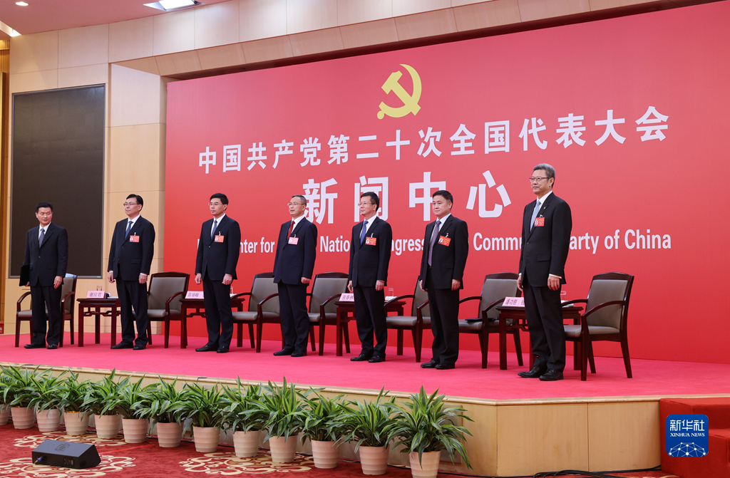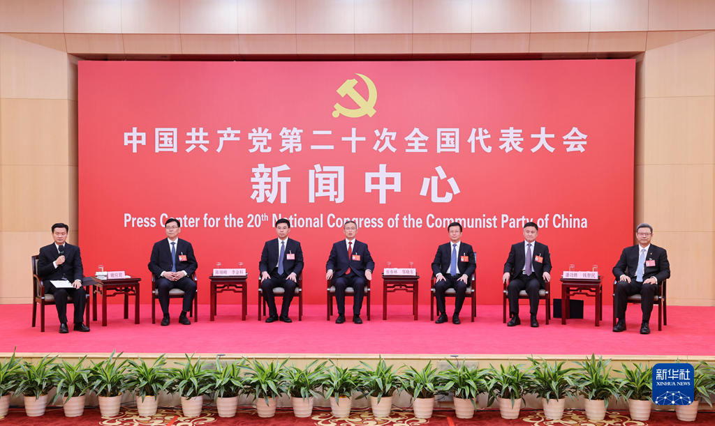 10月20日,中國共產(chǎn)黨第二十次全國代表大會新聞中心舉行集體采訪。青海、寧夏、新疆、中央和國家機(jī)關(guān)、中央金融系統(tǒng)、中央企業(yè)系統(tǒng)(在京)代表團(tuán)新聞發(fā)言人出席,介紹代表團(tuán)學(xué)習(xí)討論二十大報告情況,并回答記者提問。新華社記者 陳建力 攝