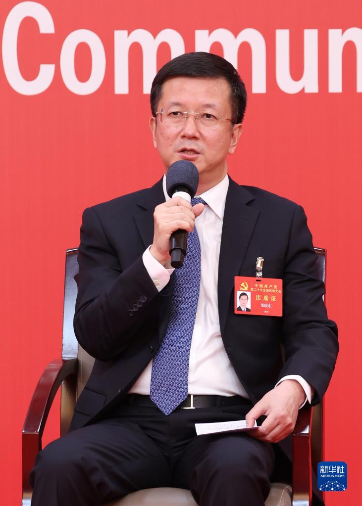 10月20日,中國共產(chǎn)黨第二十次全國代表大會新聞中心舉行集體采訪。青海、寧夏、新疆、中央和國家機(jī)關(guān)、中央金融系統(tǒng)、中央企業(yè)系統(tǒng)(在京)代表團(tuán)新聞發(fā)言人出席,介紹代表團(tuán)學(xué)習(xí)討論二十大報告情況,并回答記者提問。新華社記者 張玉薇 攝